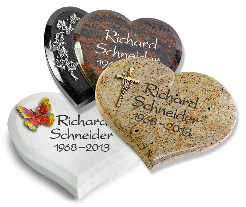 Sie suchen nach dem besonderen, schönen Grabherz für einen einen geliebten Menschen: MEMORUM-Grabmale ist der größte Online – Anbieter von günstigen Sandstrahl gravierten modernen Urnengrabsteinen und Grabeinfassungen bzw. Grabsteine für Ihr Rasengrab aus Naturstein. Wir arbeiten mit Steinmetzen in ganz Deutschland zusammen – sogar viele Bestatter gehören zu unserem Kundenstamm, Bestatter die dann unsere Grabherzen beim Trauerfall Ihren Kunden – Beisetzung gemeinsam mit einer Grabeinfassung von uns als Komplettpaket anbieten können. MEMORUM ist ein Steinmetz Meisterbetrieb, mit 3 Bildhauermeistern, unser Qualitätsanspruch setzt Maßstäbe, besuchen Sie unser Vielfältiges Angebot an Grabherzen für Ihr Rasengrab. Auch für Ihr großes Familiengrab wenn später eine Urne zusätzlich beigesetzt wurde, und Sie nicht möchten das der Grabstein für die zusätzliche Schrift wieder abgebaut werden muss, bietet sich ein Grabbuch von MEMORUM perfekt an. Das Grabbuch wird einfach nur in die Erde etwas schräg gelegt, und stellt dann eine würdevolle Grabstätte für Ihren geliebten Menschen dar. Bei uns zählt Qualität. Der günstige Preis resultiert aus der standardisierten Beschriftungstechnik von ausgewählten Schriften, umgesetzt in dauerhafter Sandstrahltechnik oder hochwertigen Metallguss Inschriften. Mit unseren Produkten entscheiden Sie sich für stilsichere und dauerhafte Grabgestaltungen vom Meisterbetrieb, die rationell gefertigt und deshalb so überraschend günstig sind.